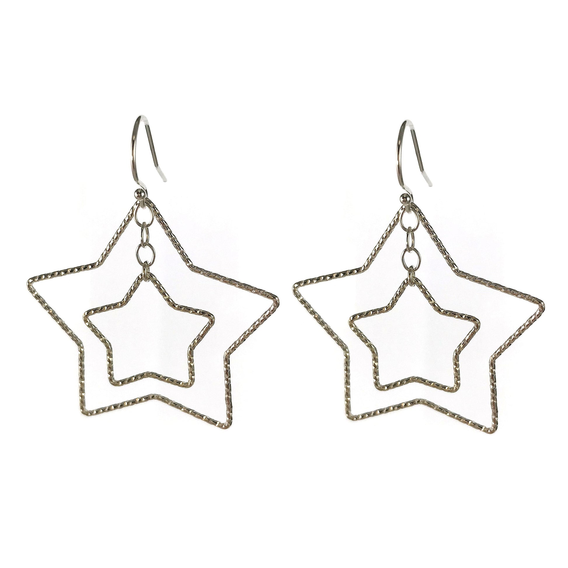 Mooie eenvoudige haakjes met eraan twee sterren die in elkaar hangen de lengte is ongeveer 35mm. Alles is Sterling zilver 925.