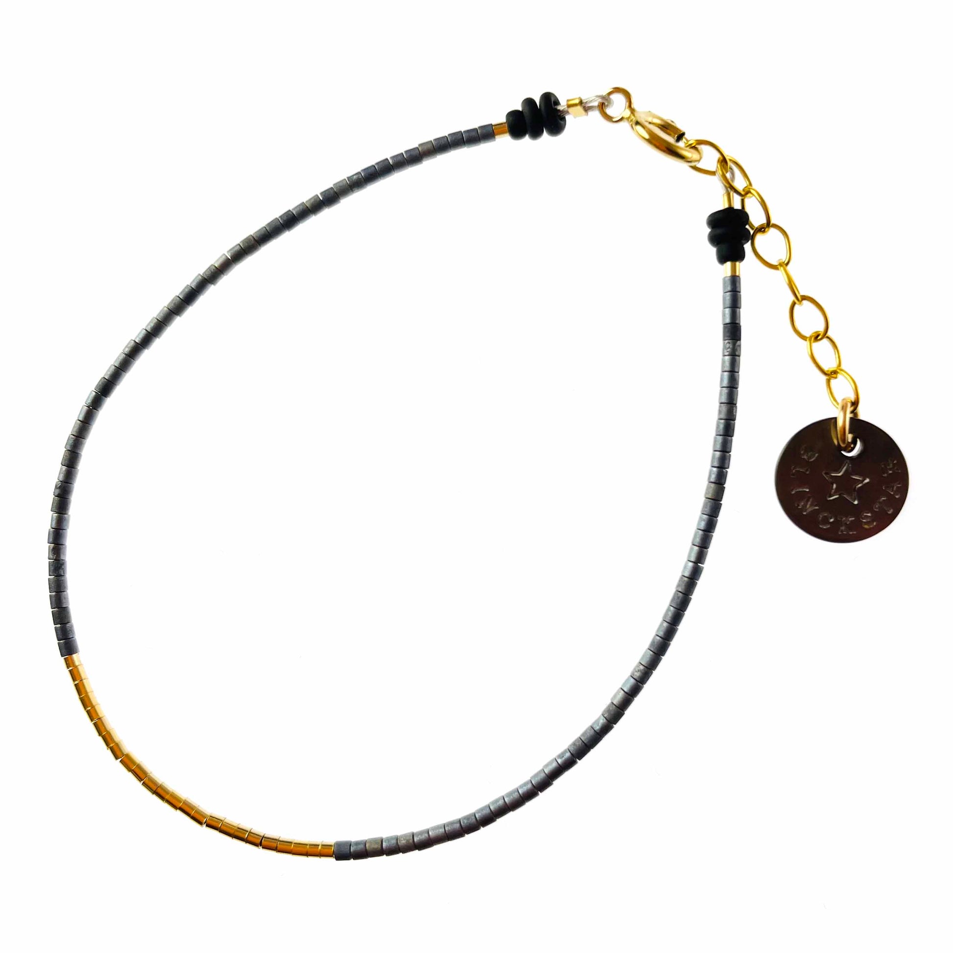 Ahh zo'n schatje, heel mooi mat jeans blauw mini Japanse glas kraaltjes met een rijtje Gold Filled mini kraaltjes in het midden. De rest is ook allemaal Gold Filled zoals je van ons gewend bent!