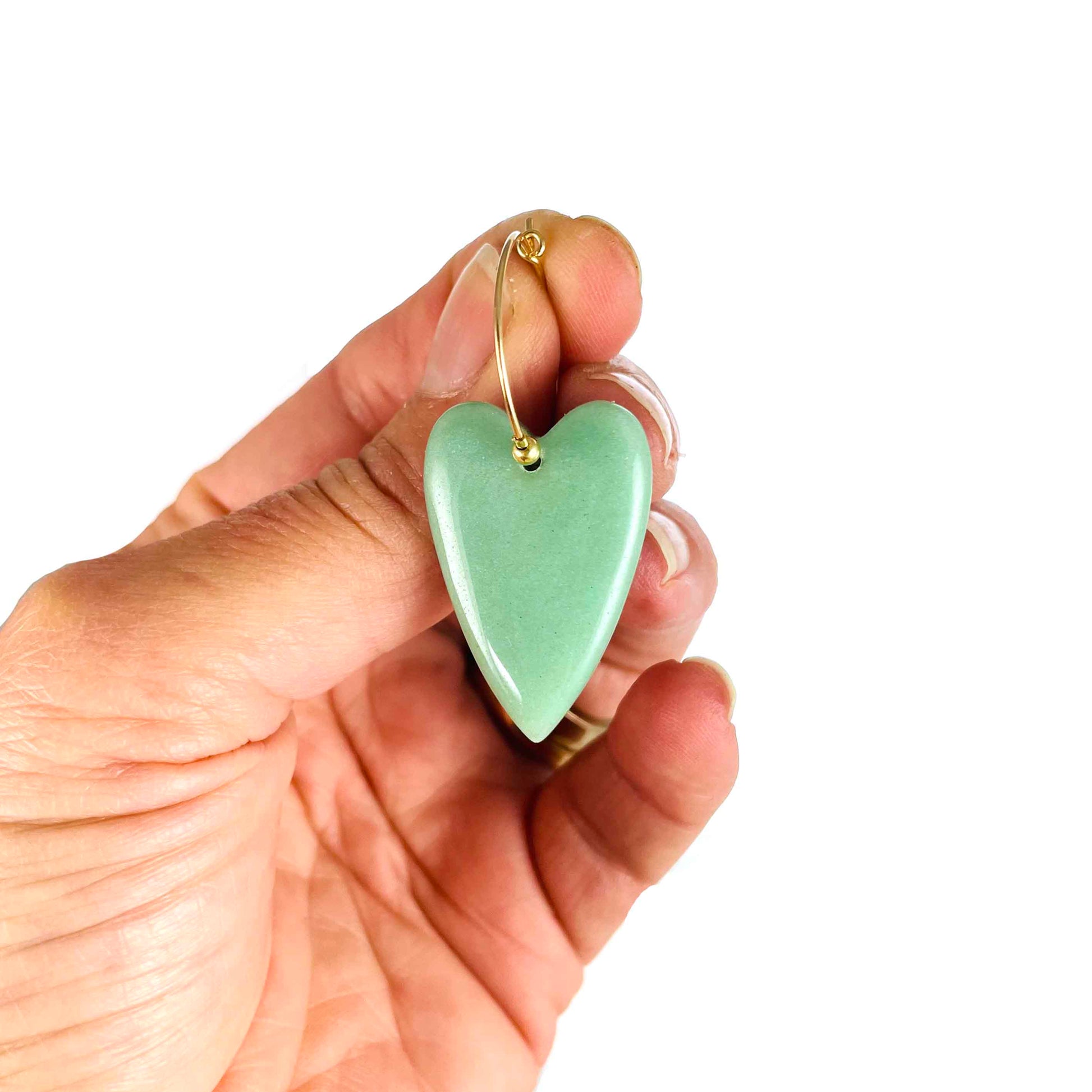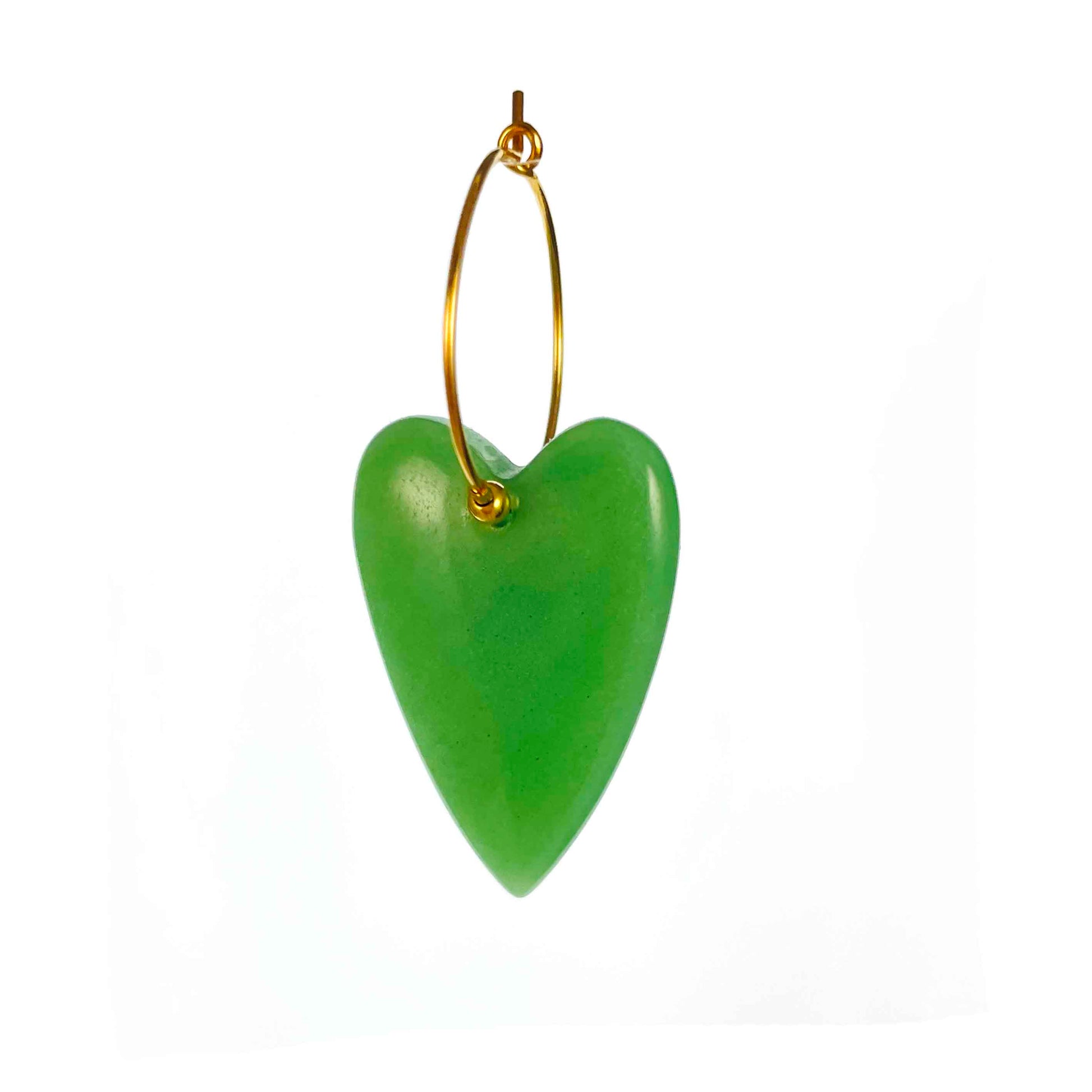 Prachtig Groen Aventurijn hart, hier geregen op een creool van 20mm doorsnede. Let op deze gaan per stuk. Als je een paar wilt dan zul je er twee moeten bestellen. :-)